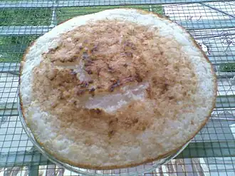 - ↑ Baking powder is sometimes substituted for the yeast.