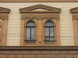 Le bâtiment a été construit dans un style néorenaissance, avec une réminiscence claire des palais de la Renaissance italienne et une influence de l'architecture néoclassique[2]. Il est composé d'un rez-de-chaussée et d'un étage et, en 1883, il possédait deux entrées, correspondant aux deux autorités qui avaient présidé à sa construction : le ministère de la Justice et le quartier de Terazije ; l'une de ces portes a été supprimée en 1910 lors de travaux d'aménagement[1]. Le rez-de-chaussée est constitué de grands blocs de pierre tandis que le premier étage est recouvert de tuiles jaunes et doté de fenêtres en demi-cintre surmontées de tympans triangulaires[1],[2]. La façade se termine par une corniche richement décorée, elle-même couronnée d'un attique doté d'une balustrade[1],[2].