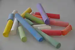 Les bâtons de craie peuvent également être utilisés sur d'autres surfaces, notamment à même le sol, par exemple pour dessiner une marelle. Il en existe en plusieurs couleurs, la principale et la plus basique étant le blanc.