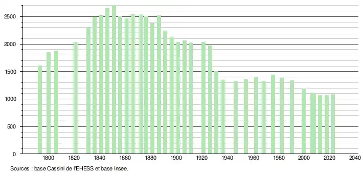 - ↑ Fiches Insee - Populations de référence de la commune pour les années 2006, 2007, 2008, 2009, 2010, 2011, 2012, 2013, 2014, 2015, 2016, 2017, 2018, 2019, 2020, 2021 et 2022.