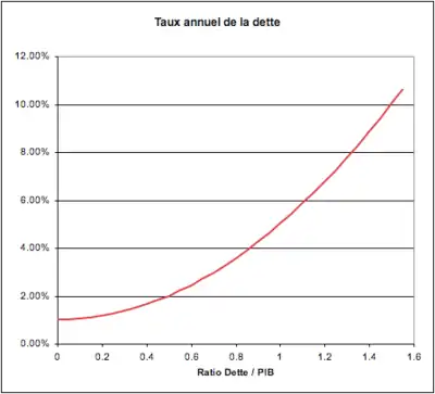 En d’autres termes, chaque tranche d’emprunt supplémentaire devrait théoriquement coûter un peu plus cher que les tranches précédentes : le taux marginal est croissant. Ainsi, la fonction qui, à un montant total emprunté par un acteur, associe le coût (annuel) satisfait une propriété de convexité.