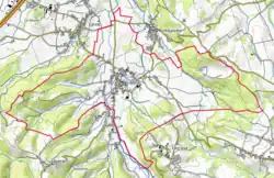 L'occupation des sols de la commune, telle qu'elle ressort de la base de données européenne d’occupation biophysique des sols Corine Land Cover (CLC), est marquée par l'importance des territoires agricoles (52,2 % en 2018), en diminution par rapport à 1990 (54,1 %). La répartition détaillée en 2018 est la suivante : forêts (39,7 %), terres arables (24,7 %), zones agricoles hétérogènes (14,3 %), prairies (13,2 %), zones urbanisées (5 %), mines, décharges et chantiers (3,1 %)[14].