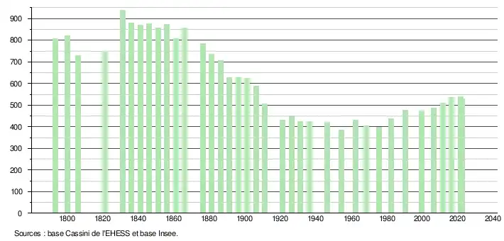 - ↑ Fiches Insee - Populations de référence de la commune pour les années 2006, 2007, 2008, 2009, 2010, 2011, 2012, 2013, 2014, 2015, 2016, 2017, 2018, 2019, 2020, 2021 et 2022.