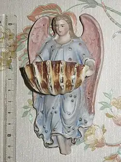 À partir du XIXe siècle, de nombreux bénitiers ont été fabriqués en céramique. Certains étaient des pièces uniques portant le prénom et le nom du propriétaire car fabriquées à la commande et offerts en cadeau lors des baptêmes, des premières communions, confirmations et mariages.