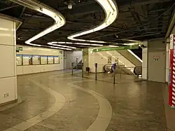 Située en souterrain, suivant un axe nord-est sud-ouest, elle dispose de trois bouches. Au sud, l'une comprend un escalier fixe et deux escaliers mécaniques et l'autre un escalier fixe et un escalier mécanique, elles permettent de rejoindre la mezzanine sud d'ou une relation avec le quai est équipée d'un escalier fixe et de deux escaliers mécaniques. Au nord l'unique bouche est équipée d'un escalier fixe et d'un escalier mécanique, elle permet de rejoindre la petite mezzanine nord également en lien avec la surface par un ascenseur. La relation avec le quai s'effectue par un escalier fixe et un escalier mécanique[2]. Située en zone M, la station dispose d'automates pour l'achat de titres de transports[4].