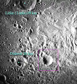 - ↑ Nomenclature complète des cratères lunaires : « Lunar Craters », sur host.planet4589.org Lunar Nomenclature, Jonathan McDowell, .