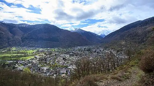 Bagnères-de-Luchon depuis les hauteurs du village voisin d'Artigue. | |||||