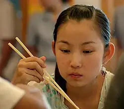 - Les japonaises (箸 / はし, hashi), courtes, à bout pointu, généralement en bois ;