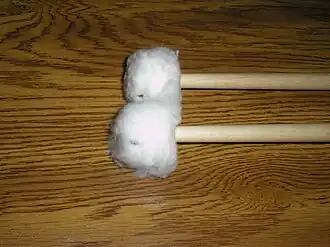 - Les battes ou mailloches sont de gros maillets, souvent terminées par des boules en laine ou en feutre.