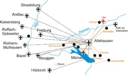 - (de) Cet article est partiellement ou en totalité issu de l’article de Wikipédia en allemand intitulé « Deutschordensballei Schwaben-Elsass-Burgund » (voir la liste des auteurs)