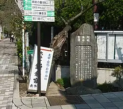 Une stèle de pierre noire qui marque le centre de la zone où se tenait le gouvernement de Yoritomo porte l'inscription suivante[3]: