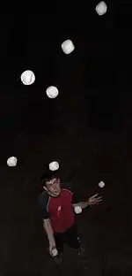 La jonglerie aux balles regroupe celle des ballons (plus gros) et des sacs à grains, ce qui montre que la forme de l’objet n’est pas toujours forcément parfaitement sphérique.