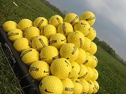 Ces balles sont généralement jaunes ou, plus rarement, blanches, et marquées de l'inscription "practice"[10] ou "range". On considère que les balles d'entraînement "volent" moins bien que les balles de jeu, de 10 à 20 mètres pour des coups de fers.