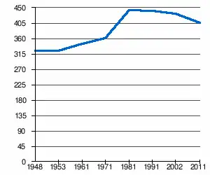 - 1 2 (sr + en) « Livre 20 : Vue d'ensemble comparative de la population en 1948, 1953, 1961, 1971, 1981, 1991, 2002 et 2011, données par localités) » [PDF], pages du recensement de 2011 en Serbie - Institut de statistique de la république de Serbie, (consulté le )