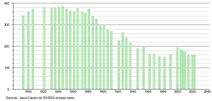 - ↑ Fiches Insee - Populations de référence de la commune pour les années 2006, 2007, 2008, 2009, 2010, 2011, 2012, 2013, 2014, 2015, 2016, 2017, 2018, 2019, 2020, 2021 et 2022.