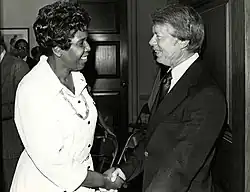 Elle est la première femme afro-américaine à tenir un discours liminaire en tant que conférencière d'honneur pour l'ouverture de la Convention nationale démocrate de 1976 dans lequel elle rappelle les devoirs d'exemplarité des élus, les valeurs fondatrices du parti Démocrate[18],[19].