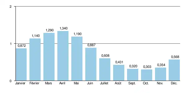 | Débit moyen | 0,773 m3/s (Pouan-les-Vallées) |