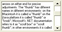 - Le pointer-et-cliquer sur une des flèches de la barre cause un premier mouvement de défilement lorsque le bouton de la souris est pressé, ensuite le défilement est poursuivi tant que le bouton reste enfoncé et qu'il reste du contenu à faire défiler.