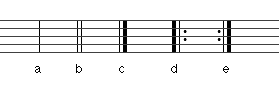 Une double barre est généralement utilisée pour indiquer la fin d'un morceau de musique. La deuxième ligne verticale de la double barre de fin est généralement grasse.