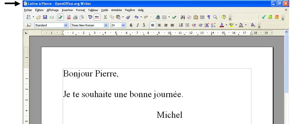 - le nom du fichier qui est traité par le logiciel OpenOffice Writer (Lettre à Pierre) ;