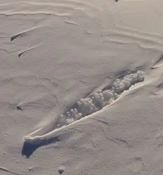 Les précipitations sont très faibles, avec une accumulation annuelle équivalente à environ 25 mm d'eau[7]. Elles se produisent principalement sous forme de poudrin de glace, de minuscules aiguilles de glace qui peuvent se former même par temps clair[7].