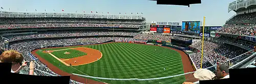 La première référence à l'expression National Pastime (passe-temps national) remonte à 1889[24]. Comme sport populaire, le football américain concurrence le baseball depuis un demi-siècle. La bascule semble s'effectuer au milieu des années 1960. En 1965, un sondage donne encore un net avantage au baseball sur le football américain par 38 % contre 25 % (45 % - 23 % en 1964)[25]. En 1967, le football américain prend pour la première fois l'avantage par 39 % contre 29 %[25]. Le baseball atteint son point bas en 1975. Cette saison-là, la finale serrée entre les Red Sox de Boston et les Reds de Cincinnati passionne les téléspectateurs, relançant du même coup l'intérêt du public pour une discipline qui souffrait depuis dix ans d'une image de sport du passé[25]. Depuis lors, les affluences sont clairement à la hausse pour atteindre des records historiques au début du XXIe siècle. En 2007, 79 502 524 spectateurs ont assisté aux 2 425 matchs de la saison régulière de la MLB, soit une moyenne record par match de 32 785 spectateurs et une hausse de 4,5 % par rapport à la saison record de 2006[26]. De plus, 42 812 812 spectateurs ont rempli les tribunes des stades des ligues mineures en 2007. C'est également un record pour les Minors[26]. Année de crise économique, 2009 est marquée par un léger tassement des affluences. Avec 73 418 479 spectateurs en saison régulière de Ligue majeure, le cru 2009 se place au cinquième rang de l'histoire de la MLB[27]. En 2010, le football américain professionnel reste en tête des sports préférés des Américains (31 %) devant le baseball (17 %), le football américain universitaire (12 %), le sport automobile (7 %), le basket-ball professionnel masculin (6 %), le hockey sur glace (5 %), le basket-ball universitaire (4 %) et le football masculin (4 %)[28].