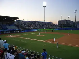 - ↑ (fr) « Terrain de baseball de Wukesong : mise en service pour le Tournoi international de baseball », sur Site officiel des Jeux olympiques de Pékin 2008, (consulté le )
