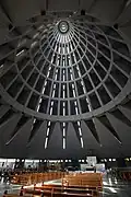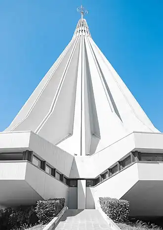 L'édifice comprend deux niveaux (le sanctuaire et la crypte) surmontés d'un toit de forme conique, nervuré, en béton armé, de 103 mètres de hauteur totale. La hauteur intérieure est de 94,30 mètres et la pointe du cône est couronnée d'une statue de la Madone en bronze[1].
