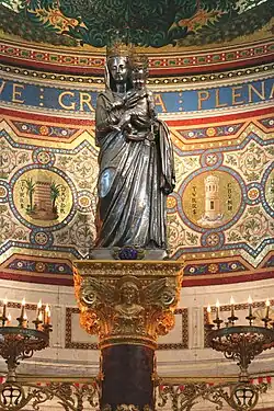 Une nouvelle statue d'argent sera réalisée en 1837 après la terrible épidémie de choléra. Le modèle fut massé par le sculpteur Cortot, la statue elle-même fut faite au repoussé, selon le procédé de Benvenuto Cellini, par l'artiste Chanuel, en six ans[27]. Pour lui céder la place, la Vierge au bouquet sera donnée à la chartreuse de Montrieux, mais retournera en 1979 au sanctuaire[Levet 14]. Elle est actuellement exposée sur l’autel de la crypte.
