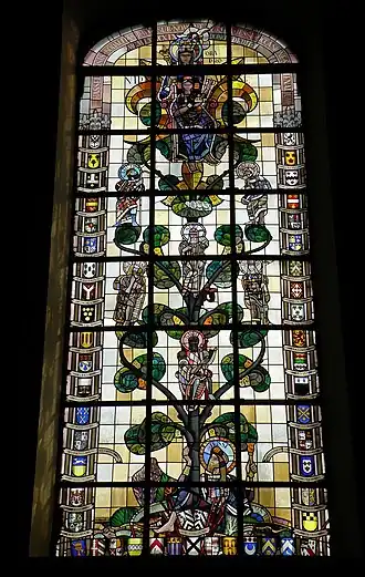 - Les vitraux, dont l’un illustre l’Arbre de Jessé.