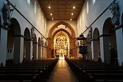 Une voûte à arc brisé du gothique primitif mène à la croisée du transept et une autre voûte s'ouvre vers le chœur. Au contraire, les passages latéraux vers les transepts sont des arcs en plein-cintre. La croisée d'ogive octogonale couronnant la croisée du transept est décorée de fresques d'anges.
