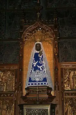 - La statue de Notre-Dame, sculptée dans du bois de tilleul, est de style roman. Elle semble dater de la fin du premier millénaire. La Vierge est assise, de face, tenant sur ses genoux l’Enfant Jésus (qui regarde dans une autre direction). Depuis le XVIIe siècle les deux visages sont recouverts d’un masque d’argent qui, noirci au fil des temps, donne à l’ensemble l’allure d’une « Vierge noire ». La statue est placée sur l’autel du transept gauche de la basilique.