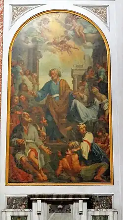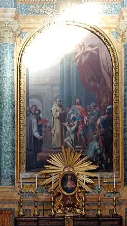 Ce tableau a été peint par Pompeo Batoni en 1765. Il semble que la peinture ne faisait pas partie de la série originale de peintures transférées de la basilique vaticane à cette basilique[30].