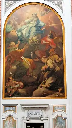 Elle a été peinte par Pietro Bianchi qui a créé cette œuvre située à l'origine sur l'autel de la chapelle du chœur de Saint-Pierre où se trouve aujourd'hui une copie en mosaïque de ce même tableau. Le tableau représente l'Immaculée Conception distinguée par saint Grégoire de Nazianze, avec saint François d'Assise etsaint Antoine de Padoue en adoration[28].