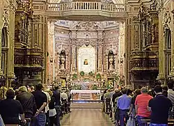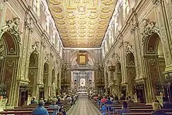 La décoration baroque élaborée (1755-1756), en stuc, bois sculpté et marbre polychrome, a été conçue par Niccolo Tagliacozzi Canale. La statue de l'Archange saint Michel est attribuée à Girolamo Santacroce. L'église possède également un monument funéraire à Conradin de Souabe. Les chapelles ont des retables de Mattia Preti, Giovanni Sarnelli, Matteo Bottigliero, Francesco De Mura, Francesco Solimena et Antonio Sarnelli. La chapelle de la Vierge del Carmelo renferme une icône du XIIe siècle de la Vierge à l'Enfant. Le presbytère possède des urnes en albâtre. Le maître-autel a été achevé par Pietro et Giuseppe Mazzetti. La sacristie conserve des fresques de Filippo Falciatore, représentant des saints de l'Ordre carmélite. Un cloître à fresques est attenant à l'église : les murs intérieurs du portique ont été peints par Leonardo de Grazia de Pistoia et achevés, en 1606, par Giovanni Balducci. La voûte du cloître a des peintures de style pompéien.