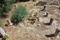 Le baptistère est situé au nord de la basilique[C 4]. Le baptistère et la chapelle formaient un tout[H 8], qualifié d'ensemble baptismal.