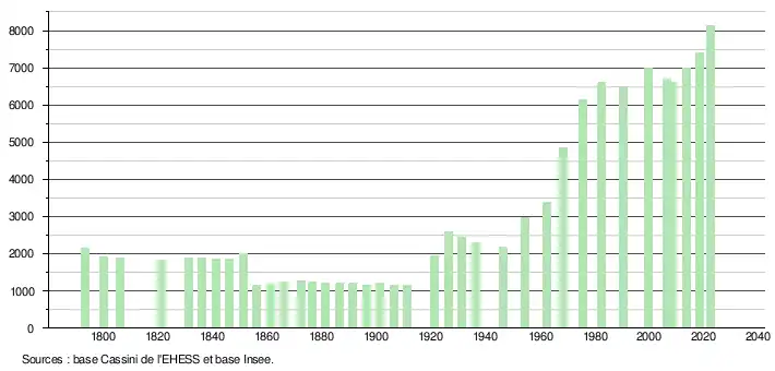 - ↑ Fiches Insee - Populations de référence de la commune pour les années 2006, 2007, 2008, 2009, 2010, 2011, 2012, 2013, 2014, 2015, 2016, 2017, 2018, 2019, 2020, 2021 et 2022.
