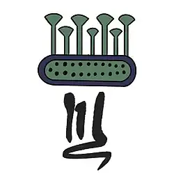 | C'est un idéogramme dans le terme šȝ : | « champ, prairie, campagne, marais, marécage »[1], |
