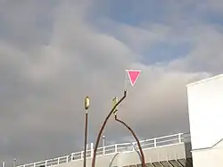 L'œuvre d'art associée à la station est une installation, sans titre, due à l'artiste Beate Honsell-Weiss[a]. Elle est composée de trois mâts en acier à l'extérieur de la station, portant chacun « une forme géométrique simple en plexiglas coloré (rectangle vert, triangle rouge, ovale doré), formant des signaux lumineux »[6],[7].