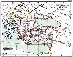 - ↑ Jean Vatatzès est le fils de Théodore Vatatzès et de la princesse Eudoxie Comnène, sœur de l'empereur Manuel Ier.