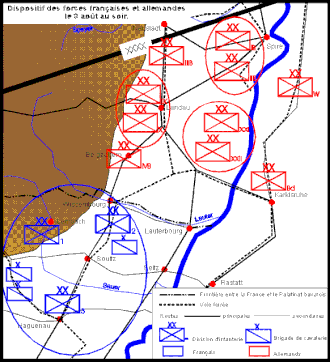 Afin de protéger la voie de chemin de fer Strasbourg-Haguenau-Bitche-Metz, le maréchal de Mac Mahon qui commande le 1er corps de l'armée du Rhin remonte l’ensemble de son dispositif autour de Haguenau et donne, le 2 août, l’ordre :