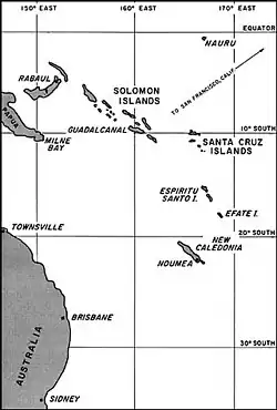 Le , les forces alliées (principalement américaines) débarquèrent à Guadalcanal, à Tulagi et aux îles Florida dans l'archipel des îles Salomon. Les débarquements sur ces îles étaient destinées à empêcher les Japonais de s'en servir comme base pour lancer des attaques contre les voies d'approvisionnement entre les États-Unis et l'Australie. Ces débarquements permettraient également d'établir ces îles comme points de départ pour une campagne pouvant isoler la principale base japonaise à Rabaul, tout en soutenant la campagne alliée en Nouvelle-Guinée. Les débarquements furent le début de la campagne de Guadalcanal, qui dura six mois.
