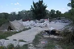 Vestiges d'un poste de contrôle du pont de Pavlograd, côté Lyssytchansk. .