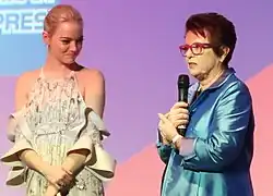 - ↑ Katie Barnes, « How Emma Stone picked up Billie Jean King's game for 'Battle of the Sexes' », ESPN, (consulté le )