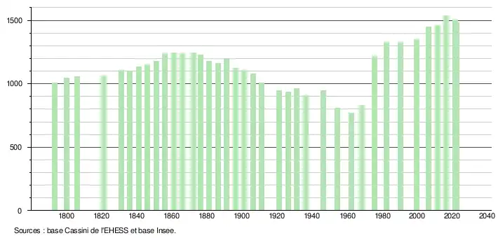 - ↑ Fiches Insee - Populations de référence de la commune pour les années 2006, 2007, 2008, 2009, 2010, 2011, 2012, 2013, 2014, 2015, 2016, 2017, 2018, 2019, 2020, 2021 et 2022.