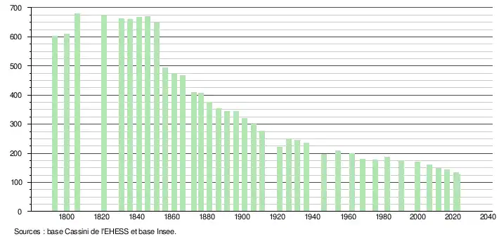- ↑ Population municipale de référence en vigueur au 1er janvier 2025, millésimée 2022, définie dans les limites territoriales en vigueur au 1er janvier 2024, date de référence statistique : 1er janvier 2022.