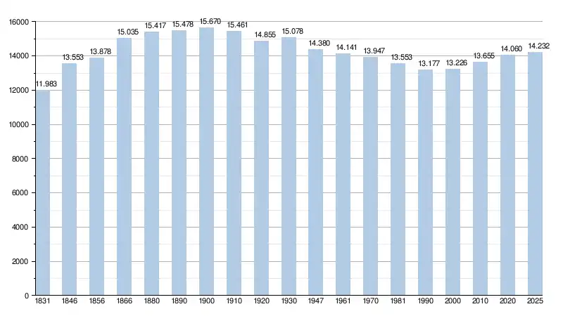 Les chiffres des années 1831 à 1970 tiennent compte des chiffres des anciennes communes fusionnées.