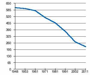 | 611 | 598 | 577 | 511 | 457 | 375 | 269[2] | 222[1] |