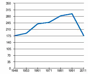 - 1 2 (sq) « Évolution de la population 1948-2011 », sur pop-stat.mashke.org (consulté le ).