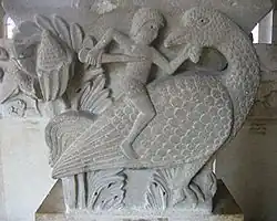 Issu de traditions celtiques et asiatiques, le dragon apparaît dès l'art paléochrétien. On le retrouve dans l'art byzantin, les icônes slaves, les gargouilles et les manuscrits enluminés[60].